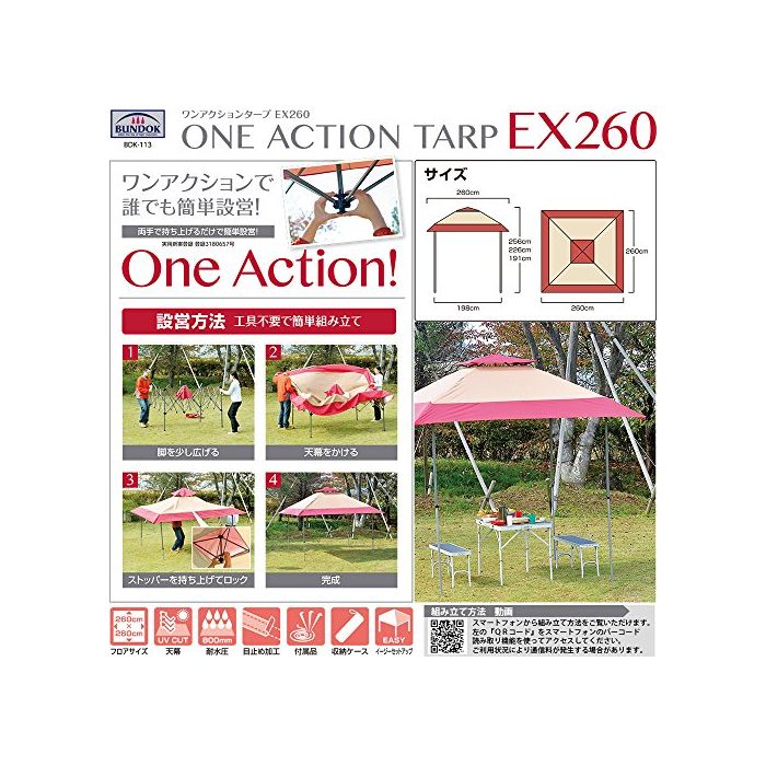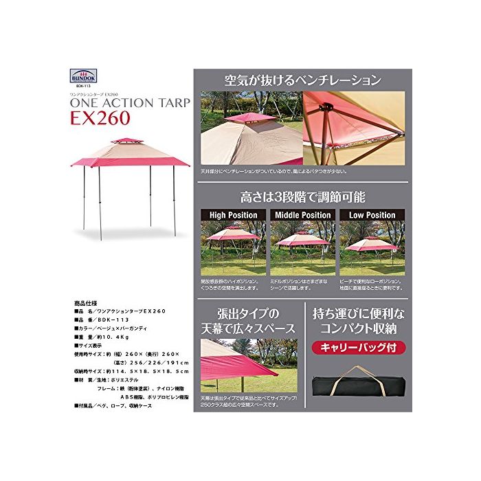 원본상품명: BUNDOK(バンドック) ワンアクション タ?プ EX 250cm BDK-113 【3~4人用】 簡?組み立て