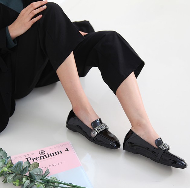 商品名:パンプス レディース フラットヒール エナメル調 2018 春 ファッション 靴 婦人靴