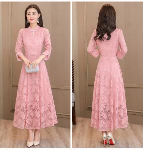 上品な総レース生地のロングワンピースが4色展開で入荷しました!