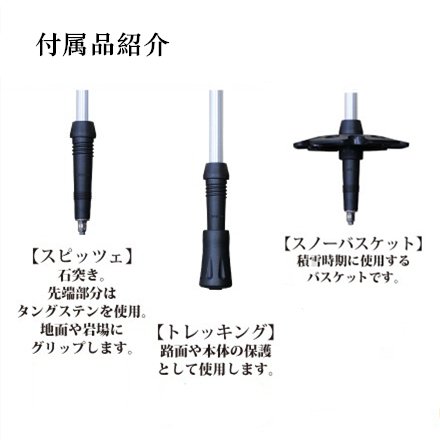 크기:65cm-135cm(3 단신축식) 중량:약290g(1개) 재질:알루미늄 합금 1세트(2개) 부속품:트래킹 캡 농구 전용 수납대