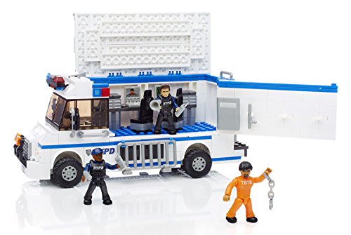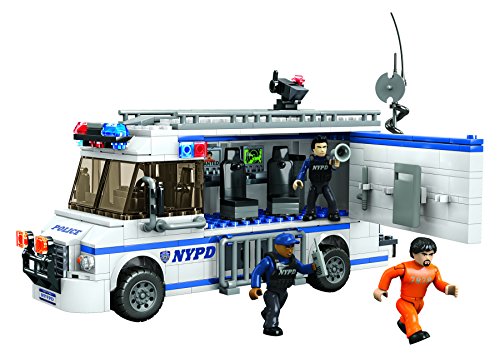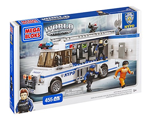 -. Binding : Toy -. Brand : Mega Bloks -. Department : unisex-child -. EAN : 0065541978515 -. Feature : Two police micro action figures wearing bulletproof vests and one bad guy micro action figure with a bag of money / Buildable NYPD command center vehicle that opens up for inside/outside action play / Lots of cool police surveillance gear and accessories, including police batons, riot shield and megaphone / Fun on its own or combined with other Mega Blokes World Builder buildable play sets! -. IsAdultProduct : 0 -. ItemPartNumber : 97851 -. Label : Mega Brands America Inc. - Megabloks - Montreal -. Manufacturer : Mega Brands America Inc. - Megabloks - Montreal -. Model : CXK69 -. MPN : 97851 -. PackageQuantity : 1 -. PartNumber : 97851 -. ProductGroup : Toy -. ProductTypeName : TOYS_AND_GAMES -. Publisher : Mega Brands America Inc. - Megabloks - Montreal -. ReleaseDate : 2014-07-01 -. Studio : Mega Brands America Inc. - Megabloks - Montreal -. Title : Mega Bloks World Builders NYPD Mobile Command Center -. UPC : 065541978515 -. Warranty : Lifetime warranty against manufacturer's defects