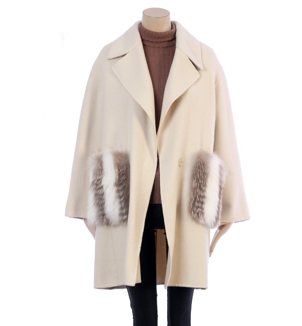 VOV, 폭스터 포켓으로 포인트를주어 고급스러운 스타일 감각을 연출하는 모직 코트입니다