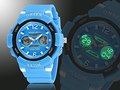 -. Title : OHSEN Young Mens Boys Analog Digital Quartz Wrist Watches Dual Time Alarm Chronograph in Blue