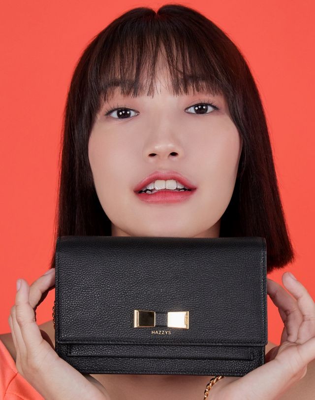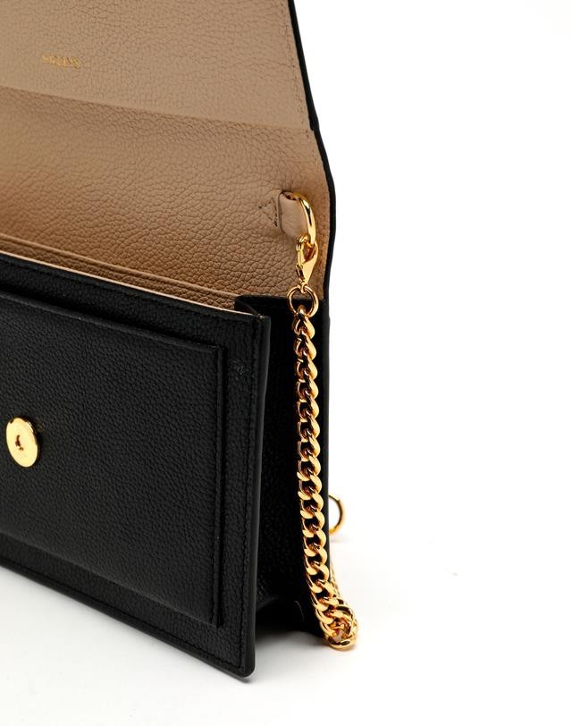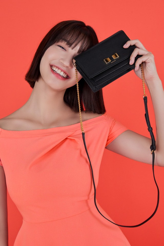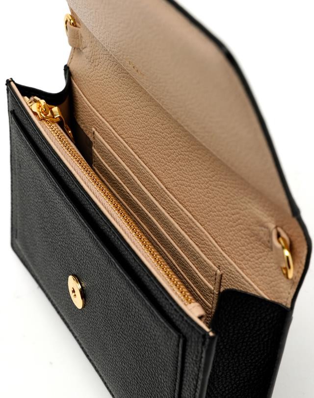 부드러운 소가죽 소재로 베이직한 디자인에 하단 골드 리본장식으로 포인트를 준 장지갑 겸용 체인크로스백 입니다.