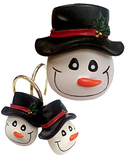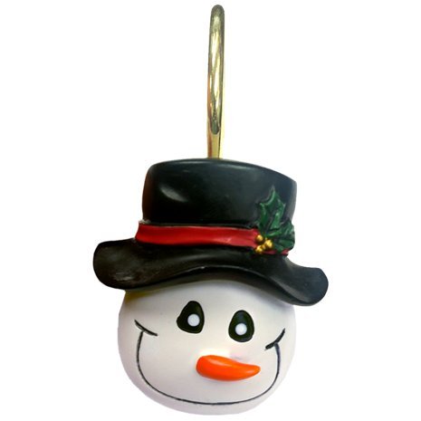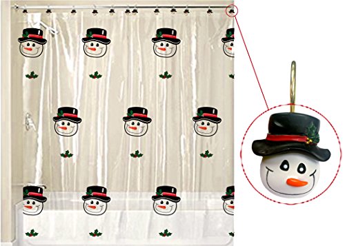 LAMINET Snowman Decorative Shower Curtain & Hooks (Set of 12, Snowman Shower Hooks)