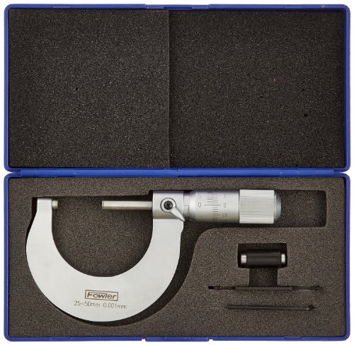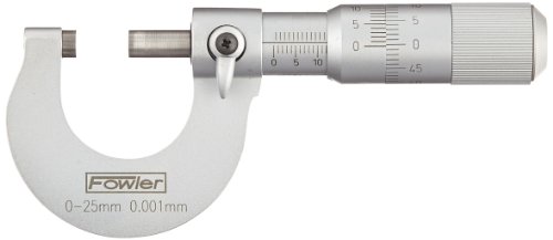 Fowler 52-235-101-1 Advanced Design Outside Metric Micrometer, 0-25mm Measuring Range, 0.00254mm Accuracy, 0.001mm Graduation
