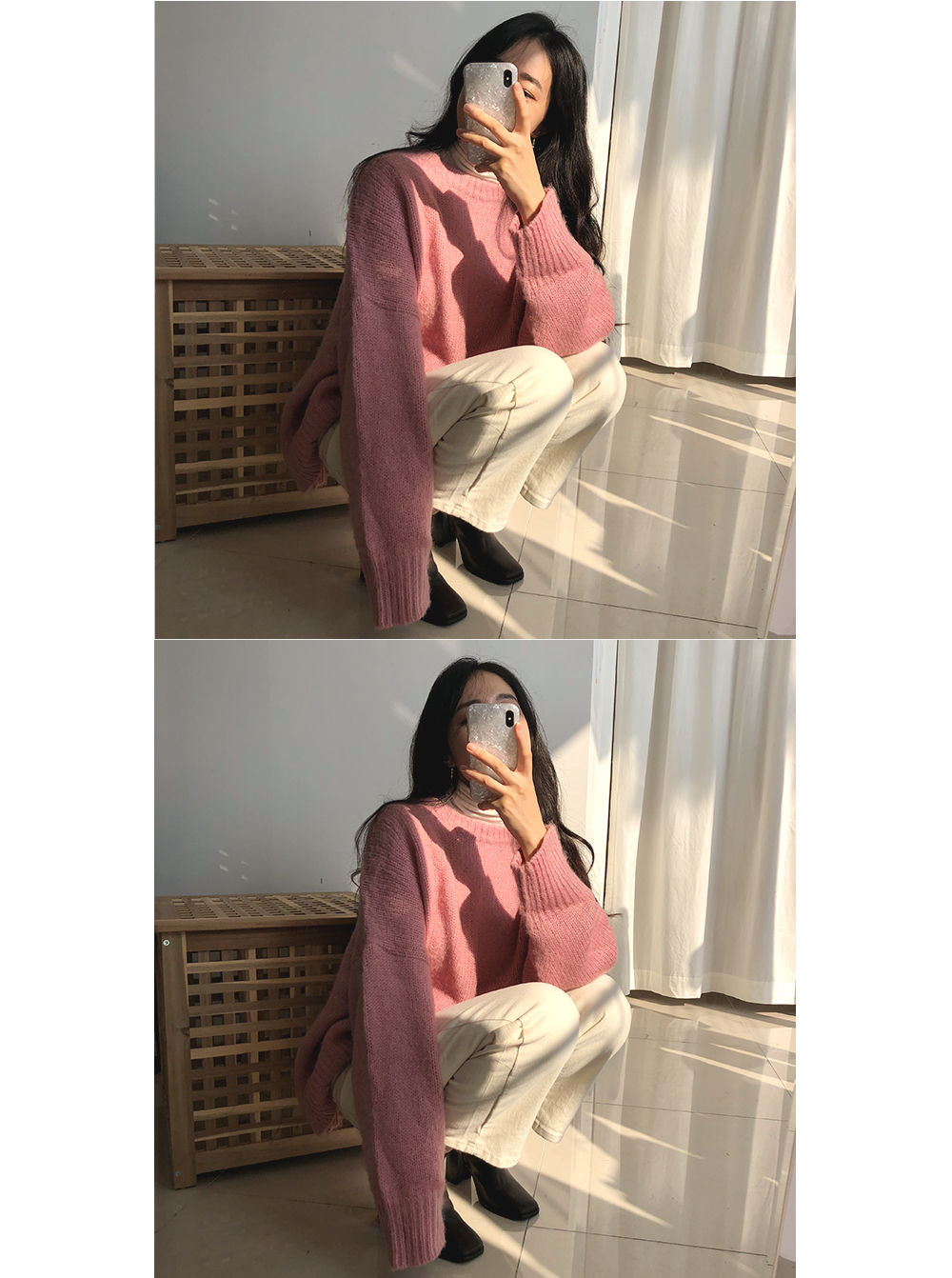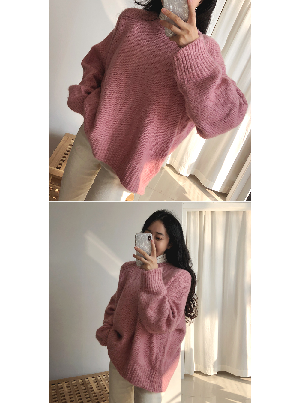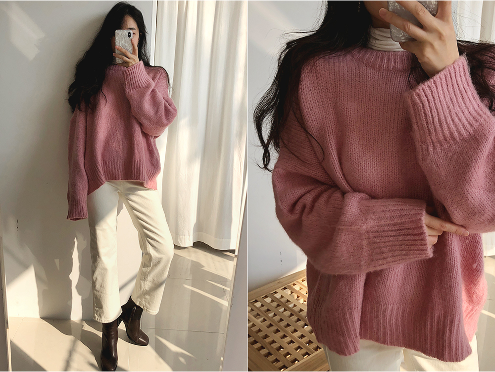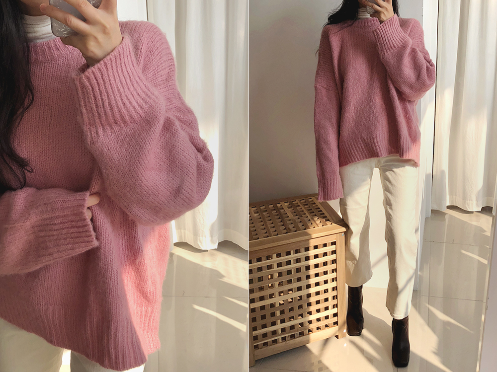 포근한 느낌의 오버핏 라운드 니트탑이구요