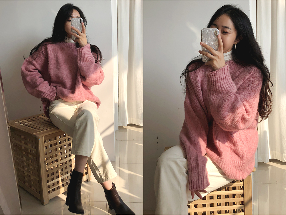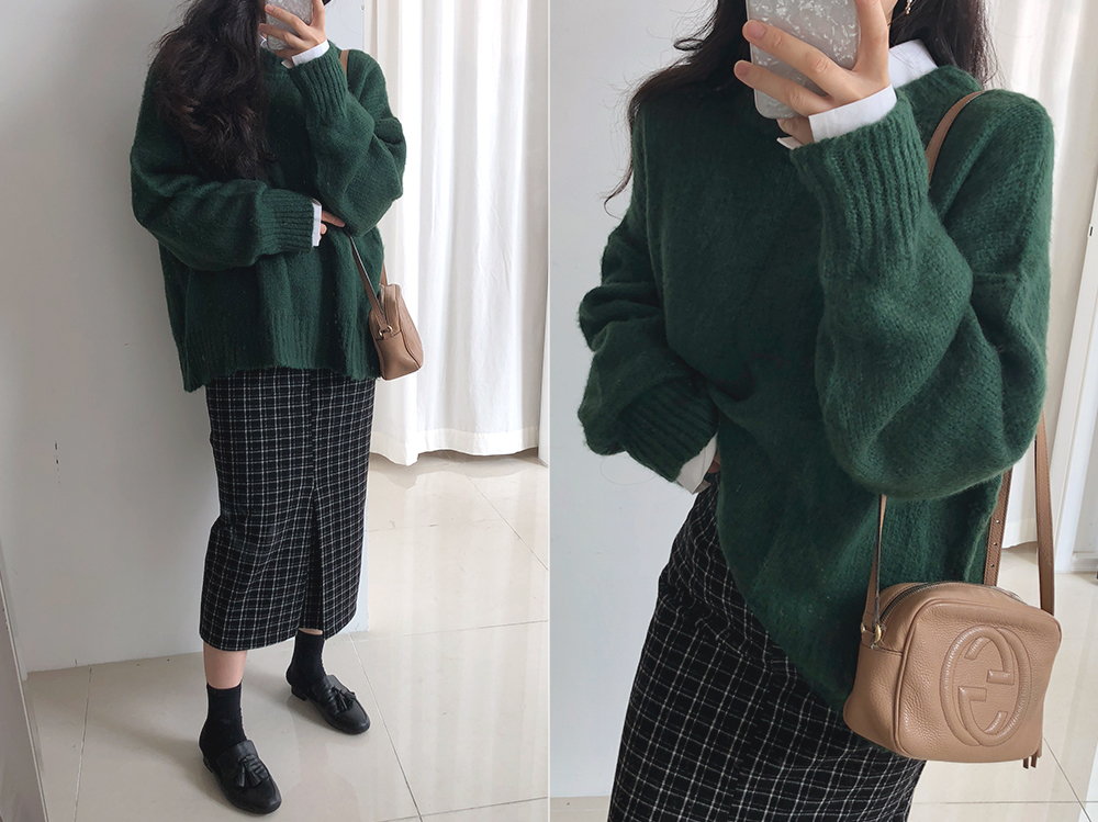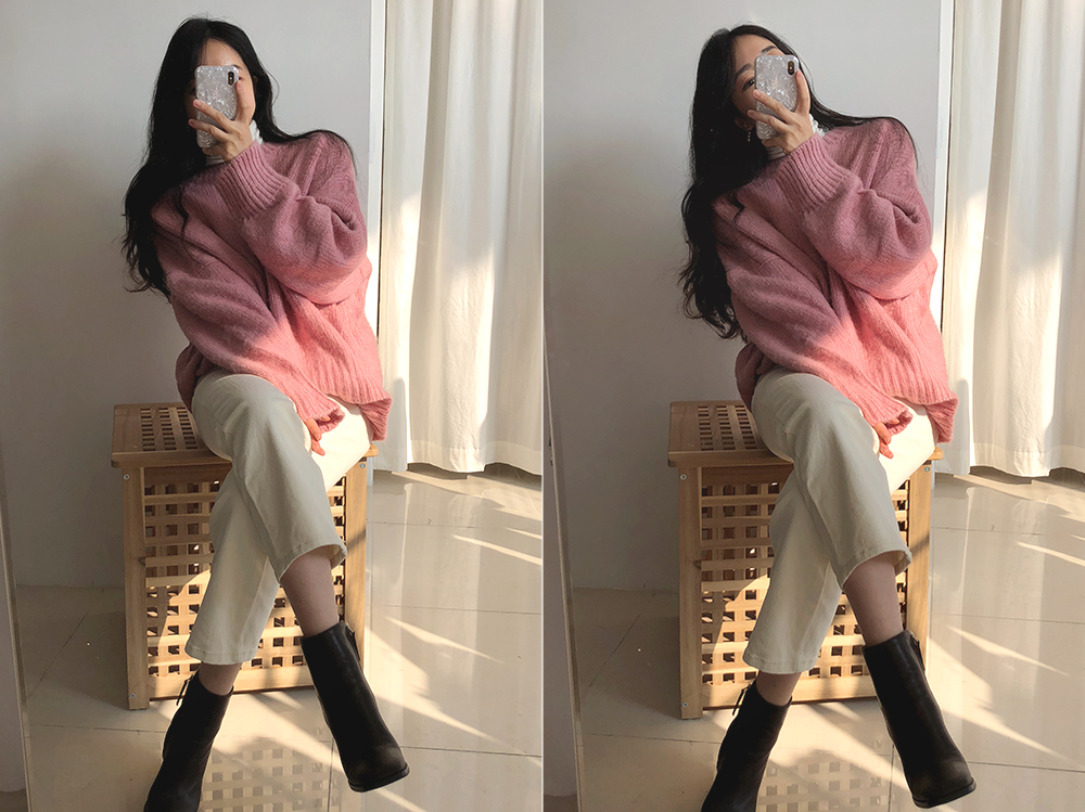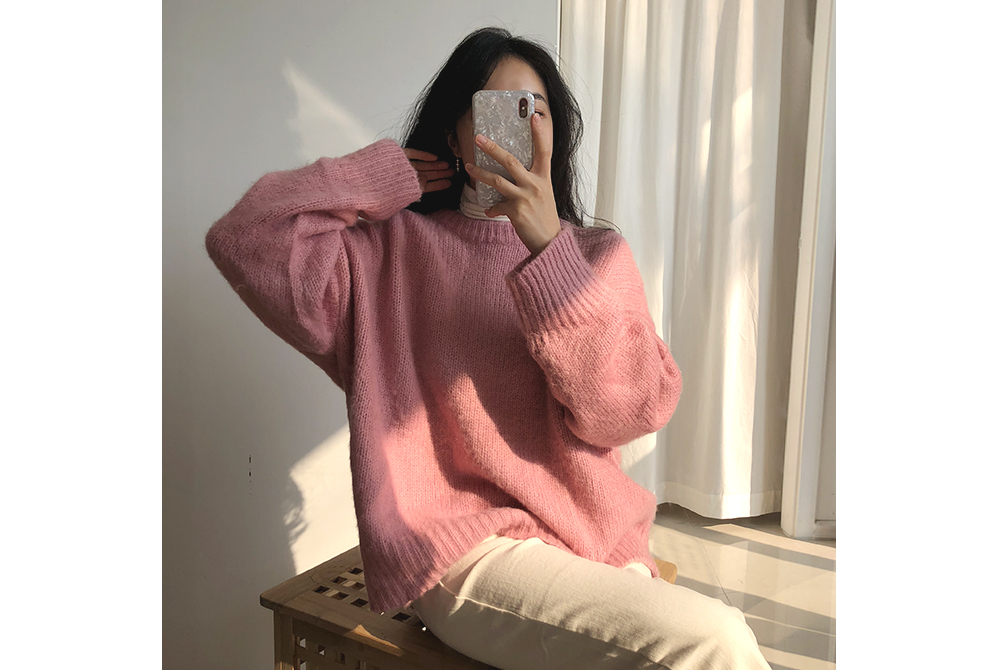 포근한 느낌의 오버핏 라운드 니트탑이구요