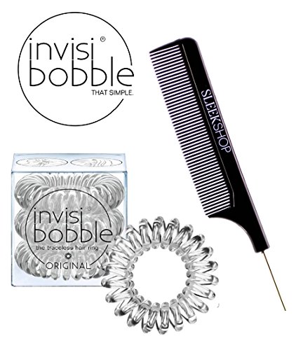Invisibobble ORIGINAL CLEAR The Traceless Hair Ring (3 rings), (with Sleek Steel Pin Tail Comb) (ORIGINAL, CLEAR)