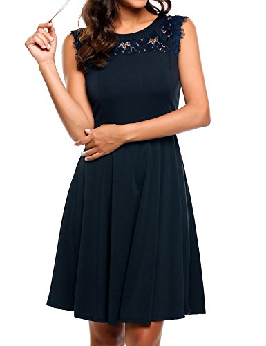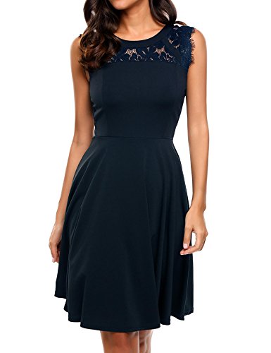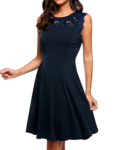 Featuring Lace patchwork round neckline, sleeveless, A-line shaped evening dress