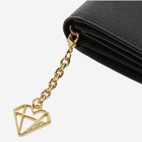 고급스러운 소가죽 바탕에 로고 장식과 탈착가능한 다이아몬드 참 장식으로 포인트를 준 반지갑입니다.
