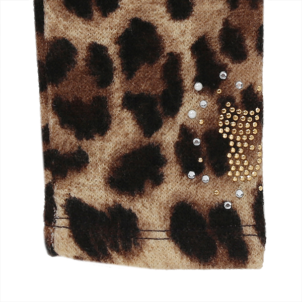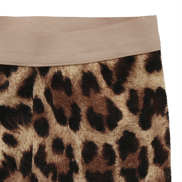 상품설명 호피 레깅스입니다. 니트 느낌나는 소재에 허리 골드펄 밴드 배색으로 포인트를 주었습니다.
