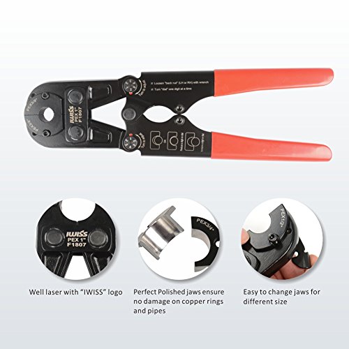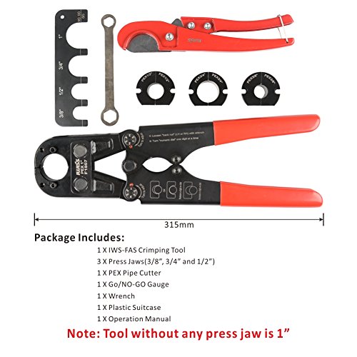 IWISS PEX Pipe Crimping Tool Kit with Jaw Sets 3/8",1/2",3/4",1" with PEX Pipe Cutters Suitable for Sharkbite, Watts, Apollo and All US F1807 Standards Plumbing