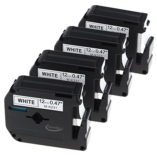 Anycolor 4 Pack Compatible Brother P-touch M Tape M231 MK231 M-K231 Black on White Label Tape for Brother P Touch Label Maker PT-90 PT-M95 PT-70BM PT-65 PT-85 PT-45 (0.47 Inch x 26.2 Feet 12mm x 8m)
