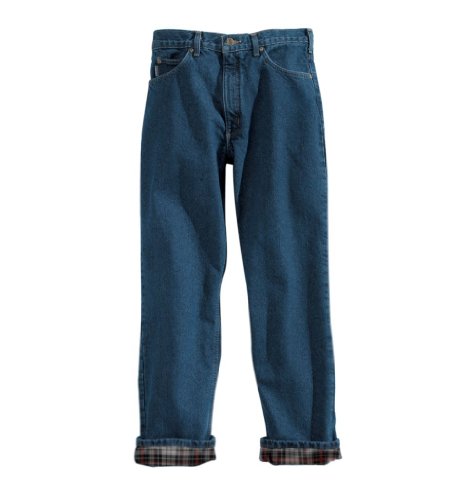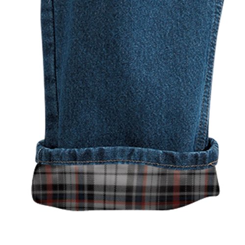 -. Feature : Indigo straight-leg jean with flannel lining featuring relaxed-fitting seat and thigh / Five-pocket styling / Zip fly with button