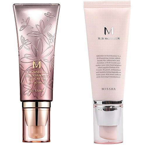 -. Feature : This bundle includes one 1.6 oz. tube of MISSHA No.27 Honey Beige M Signature Real Complete BB Cream SPF25 PA++ and one 1.4 fl. oz. tube of MISSHA M BB Boomer / The Signature Real Complete BB Cream softens the appearance of imperfections for an even complexion that still looks natural / While providing gentle coverage, it also treats blemishes and contains wrinkle-preventing antioxidants to improve your skin over time / Our Boomer boosts the adherence and wear of foundation while brightening the skin and providing skincare benefits / It is specially formulated for those looking to express a dewy finish and healthy glow