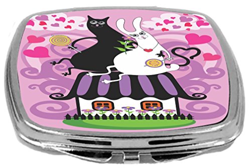 Rikki Knight Black and White Cats in Love Sitting on House Illustration Design Compact Mirror, 17 Ounce