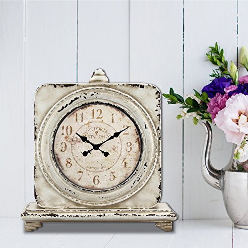 Add a touch of vintage flare to your home decor with Stonebriar's antique white table top clock. This clock features a worn white painted finish for a retro French Country decor look. The face of this clock features an antique Victoria Station inspired design that has been lightly distressed. Clock measures 12.5 inches in height and 12 inches in width. It is the perfect size for the mantel, shelves, or on any table top. This unique clock is the perfect addition for your living room, kitchen, dining room, bathroom, or bedroom. Stonebriar's vintage clock is battery operated and requires a single AA battery (not included) Buy your Stonebriar antique white Victoria Station table top clock for yourself or give it as a gift for Christmas, birthdays, and housewarmings. 0 |