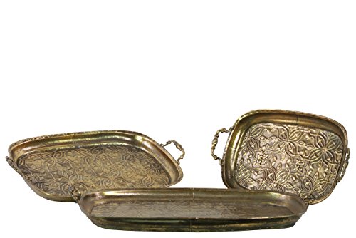 Metal Rectangular Tray with Metal Handles Set of Three Antique Finish Gold
