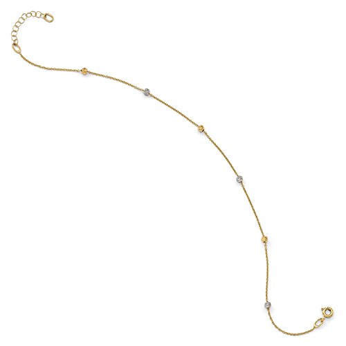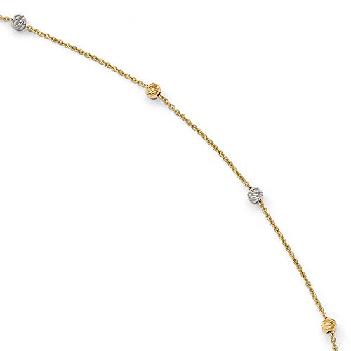 Solid 14k Gold Two-Tone Polished Diamond-Cut with 1in ext. Anklet 9"