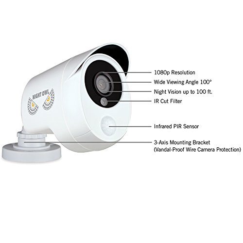 Night Owl’s 1080p Wired Infrared Cameras provide up to 100 ft. of Night Vision. During the day your camera will display in full color mode. At night, they will enter black and white mode