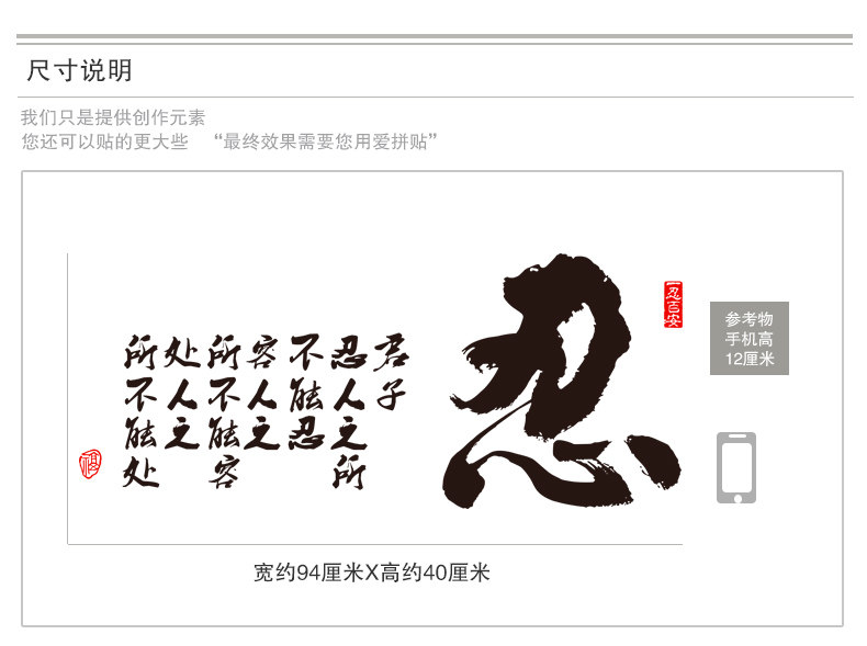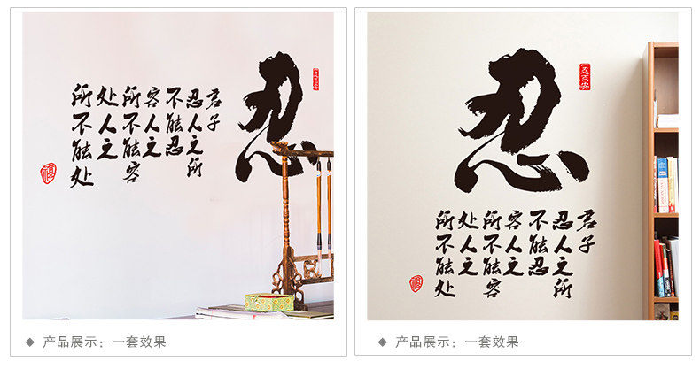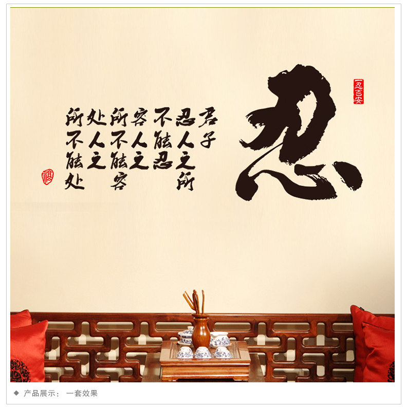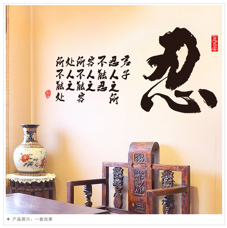 书房办公室励志贴书法字画墙上装饰客厅玄关自粘墙贴纸贴画君子忍
