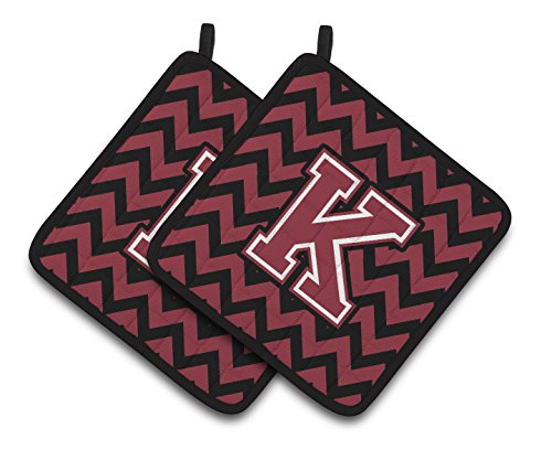 Caroline's Treasures Letter K Chevron Garnet & black Pair of Pot Holders CJ1052-KPTHD, 7.5HX7.5W, Multicolor