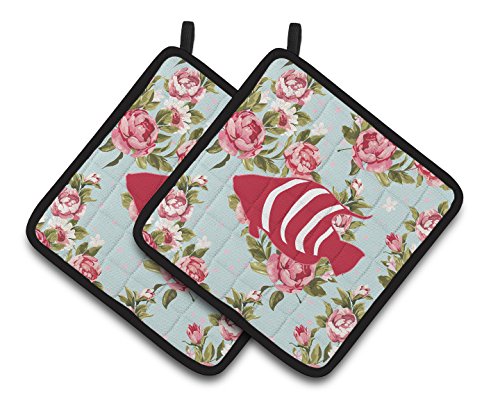 Caroline's Treasures Fish Shabby Chic Blue Roses Pair of Pot Holders BB1020-RS-BU-PTHD, 7.5HX7.5W, Multicolor