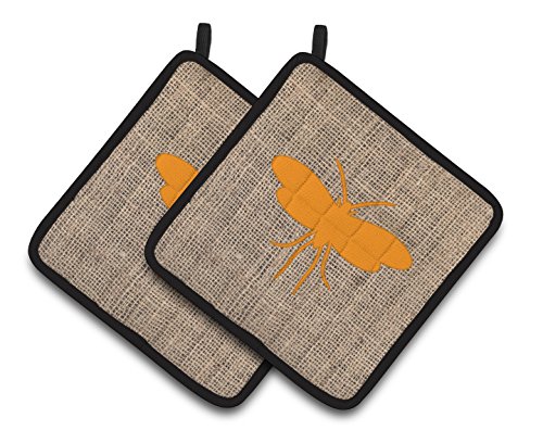 Caroline's Treasures Moth Faux Burlap & Orange Pair of Pot Holders BB1058-BL-OR-PTHD, 7.5HX7.5W, Multicolor