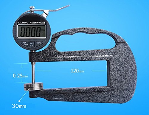 - QST-CAIDU Custom Edition Digital Thickness Gauge | Flat Anvil, 120mm Throat Depth | ID-S Type & Inch/Metric | 0-1" (0-25mm) Range, 0.00005" (0.001mm) Resolution, Chuck Ø 30mm, and an accuracy of + or - 0.001mm