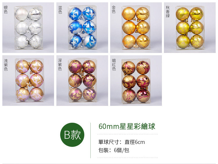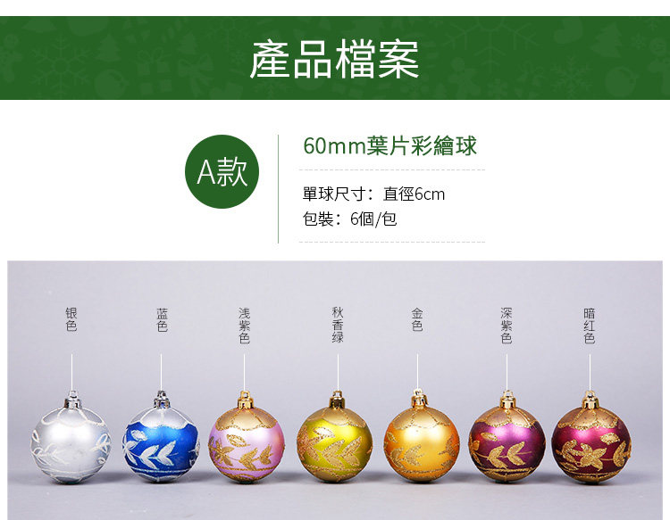 台湾晶华6cm圣诞球圣诞树藤条装饰叶片彩绘球圣诞装饰球挂件饰品
