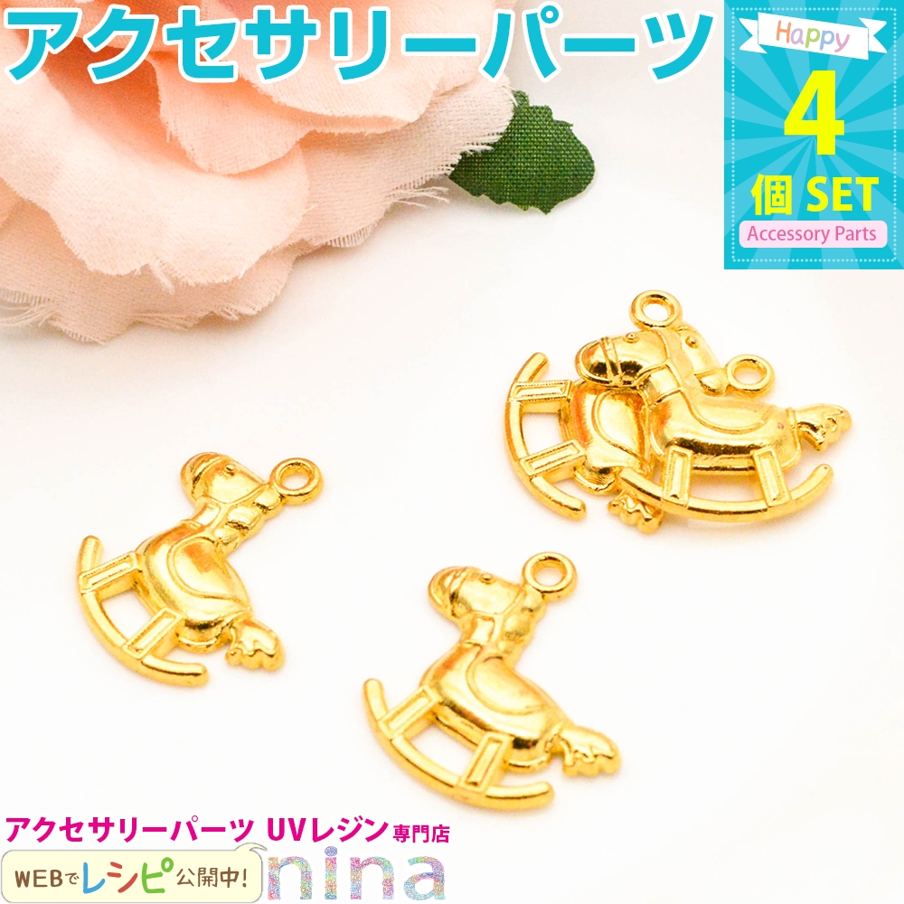 ■商品名:チャーム 木馬 ゴールド カン付き 4個セット