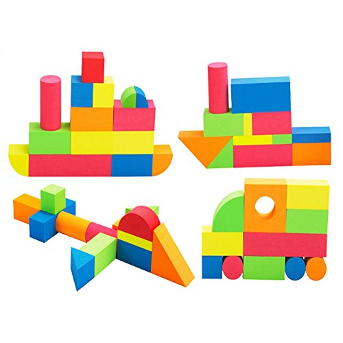-. Feature : Made from good quality foam,the blocks are soft and durable,safe for children to play with. / Eco-friendly water paint,not easy to fade,no harm to body and without toxic substance,no smell. / Different colors and shapes can attract children's attentions,impove their shape and color cognitive. / Combine different kinds of blocks can better improve the children's imagination and training their logical thinking. / A helpful educational toy to impove children's intellectual development, hands and brain, interest cultivation, grip, hand eye coordination.
