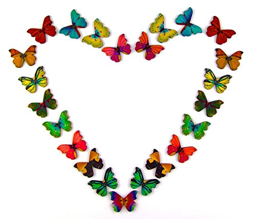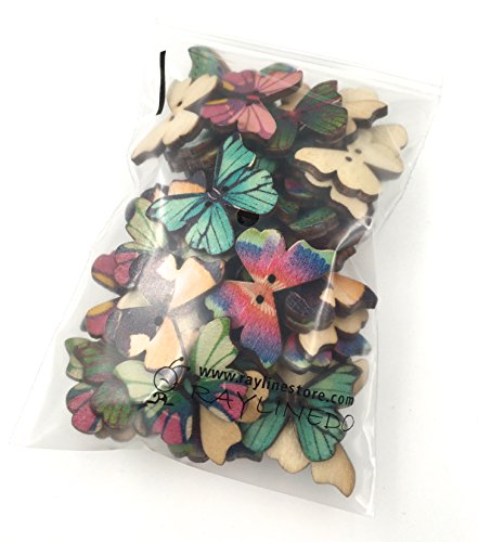 - Wood Butterfly shape buttons in 8 bright colours mixed Pink, Red, Orange, Yellow, Beige, Dark Green, Blue and Light Green