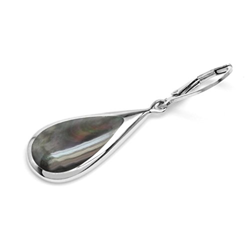 Black Mother Of Pearl Inlay White Gold Plated 925 Sterling Silver Drop Dangle Leverback Earrings
