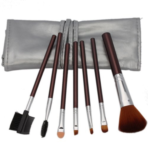 Jovana 7pcs Brown Professional Cosmetic Makeup Make up Brush Brushes Set Kit with Silver Bag Case by JOVANA