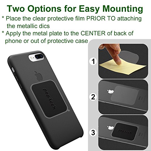 -- Stick the clear sticker outside of your phone case, then place the metal plate onto it.
