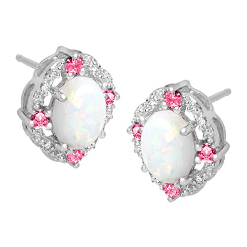 Brighten up your day with the glow of these opal sterling silver earrings. Punctuated by 3/8 ct round-cut created pink sapphires and centers of oval-cut created opals totaling 1 1/8 ct, these studs are topped in diamond accents. Pieces measure 1/2 by 7/16 inches.