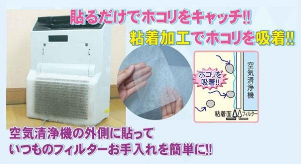 | 貼るだけでホコリをキャッチ!!空気清浄機や加湿器などの吸気部の汚れを防ぎ、お手入れが楽になります。粘着加工をしているので、通常のフィルターよりもホコリを吸着しやすく、捕らえたホコリを逃がしにくいです。フィルターはカットしてお好きな大きさにでき、様々な形状の空気清浄機や加湿器にご使用いただけます。 |