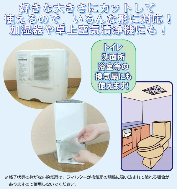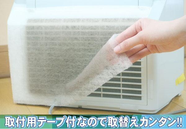 貼るだけでホコリをキャッチ!!空気清浄機や加湿器などの吸気部の汚れを防ぎ、お手入れが楽になります。粘着加工をしているので、通常のフィルターよりもホコリを吸着しやすく、捕らえたホコリを逃がしにくいです。フィルターはカットしてお好きな大きさにでき、様々な形状の空気清浄機や加湿器にご使用いただけます。 |