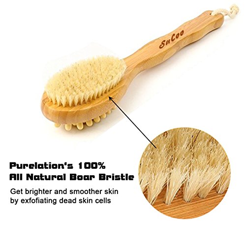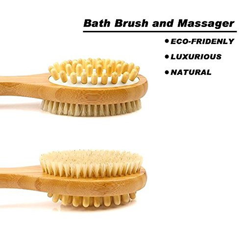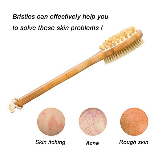 - ❤ SMOOTHER HEALTHIER SKIN & REDUCES CELLULITE: The bath brush is good for both dry and wet brushing, the brush helps you remove dead skin and exfoliate SPA then enhances your skin elasticity, last promotes your skin regeneration and result new glow skin, whiles the second side exfoliates massages and detoxifies your skin, helps to reduce acne and circulate blood circulation, helps to relaxes muscles & relieve stress, suitable for workers, people rarely doing outdoor sports and the elderly.