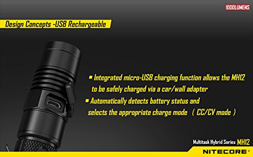 -. Title : BUNDLE: Nitecore MH12 CREE XM-L2 U2 LED Rechargeable Flashlight 1000 Lumens w/ 1x USB Wall Charger Plug, 1x USB Car charger Plug,, 1x 18650 3200mAh Li-ion Rechargeable battery, 1x battery case and 1x Lightjunction Keychain Light