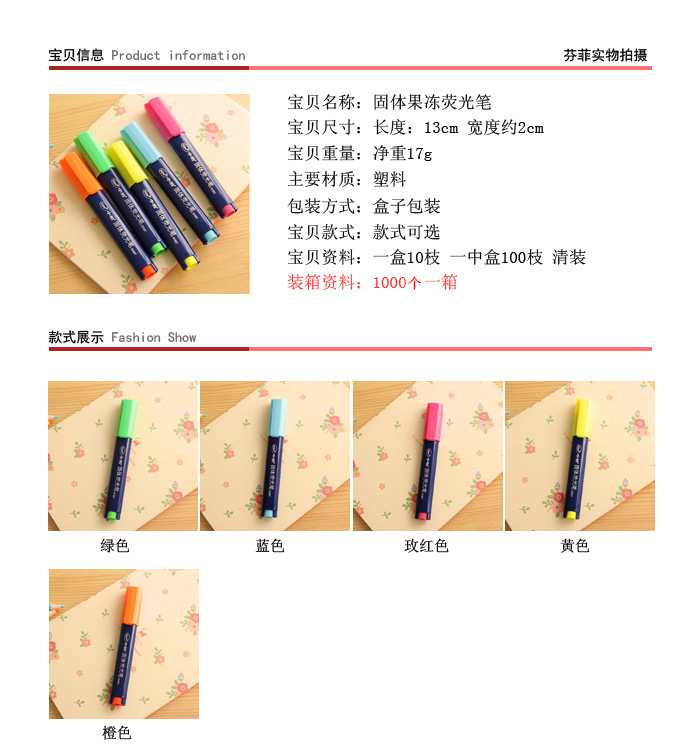 日韩国固体果冻荧光笔标记笔蜡笔创意闪光彩笔彩色记号笔文具套装