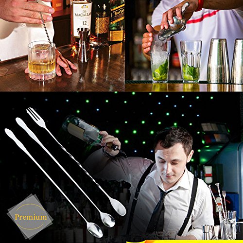 These 3pcs of 10.2 Inches(26cm) Bar Set Spoons are very handy. They are perfect for use as Cocktail Shaker Spoon for any party