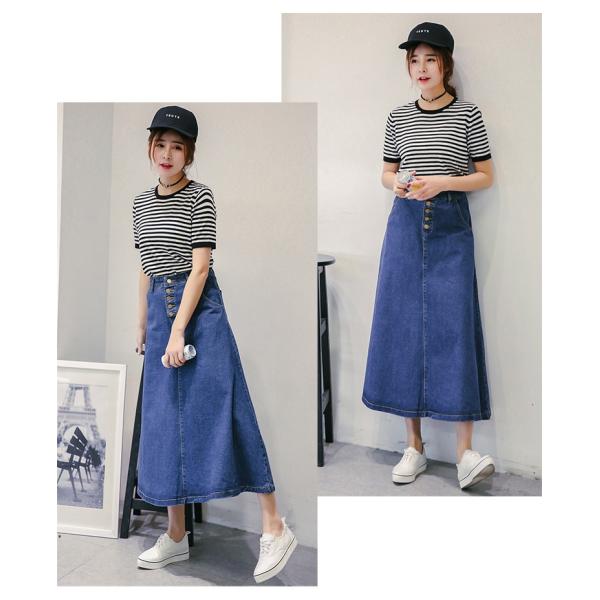 前ボタンデニムロングスカート レディース ボトムス マキシ丈 2017 新作カジュアルコーデにプラスしたい、ベーシックなデニムスカート*ハイウエストに前ボタンで、シンプルながらトレンド感も♪女性らしいキレイなフレアシルエットはタイトなトップスと相性抜群!【カラー】ブルー【サイズ】[S]ウエスト67/丈82(cm)[M]ウエスト71/丈82(cm)[L]ウエスト75/丈83(cm)※製品により多少の誤差が生じる場合がございます。【素材】デニム【ご使用上の注意】着用に問題のない製法のほつれ、商品の性格上、開封された商品・一度でも着用されました商品の返品・交換は一切お受け致しません。イメージと違う、サイズが合わない等の理由での返品は一切受け付けておりません。購入後のサイズ交換は対応しておりません。生産終了後すぐ発送しているため匂いがある場合がございます。ご了承ください。【生産国】made in china※商品はご注文を頂いてから2週間前後の到着となります。