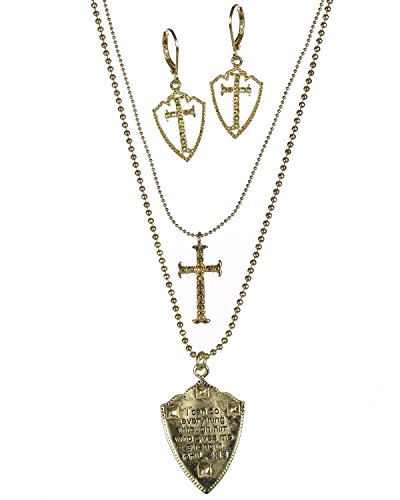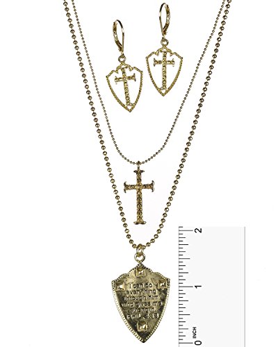 Long gold-tone ball chain with the inscription I can do everything through him who gives me strength with a cross and crystals Jewelry Nexus is dedicated to introducing jewelry that fits the lifestyle of today's woman. Quality product and first-class customer service have contributed to our reputation.Jewelry Care Instructions: Don't wear your jewelry to bed. Please store your jewelry in a protective container and keep away from sunlight and moisture. For mild cleaning please use a Silver Polishing Cloth.Feature