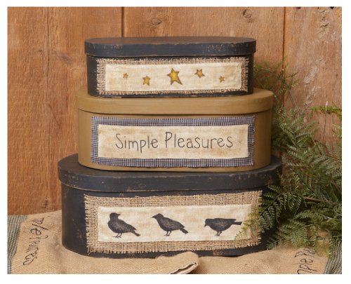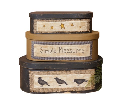 -. Binding : Misc. -. Brand : Your Heart's Delight -. EAN : 0840250087792 -. Feature : Measures Stack: 14" H LG: 15" x 8 1/2" x 5 1/2" / Stylish decorative accent for any room decor / Great gift for family, friends, neighbors and acquaintances / Set of three nesting boxes -. Label : Your Heart's Delight -. Manufacturer : Your Heart's Delight -. Model : 8B2140 -. MPN : 8B2140 -. PackageQuantity : 1 -. PartNumber : 8B2140 -. ProductGroup : Home -. ProductTypeName : HOME -. Publisher : Your Heart's Delight -. Studio : Your Heart's Delight -. Title : Your Heart's Delight Simple Pleasures Nesting Boxes, 15 by 8-1/2 by 5-1/2-Inch, Set of 3 -. UPC : 840250087792