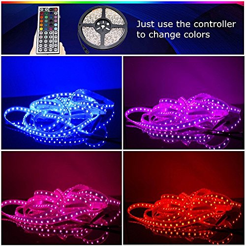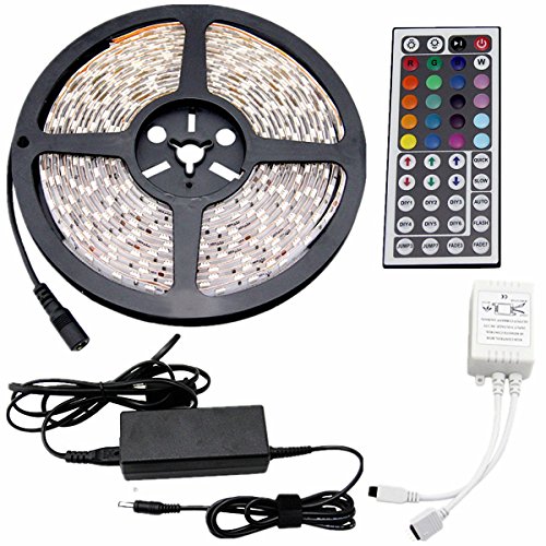 CARYLED 16.4ft 5M Waterproof Rope Lights 300 LED 5050 SMD Color Changing RGB Flexible LED Strip Light + 12V 6A Power Supply + Remote + IR Controller Muliticolored