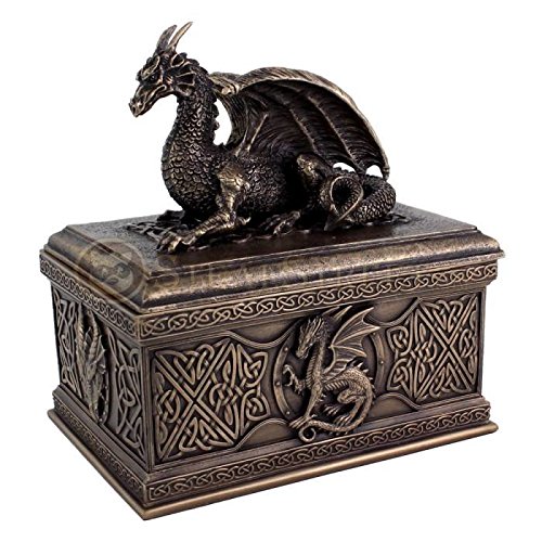 6 Inch Celtic Dragon Treasure Box Jewelry Holder, Bronze Colored
