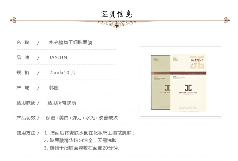 JAYJUN医院又一力作,最佳配方产品JAYJUN 植物干细胞面膜